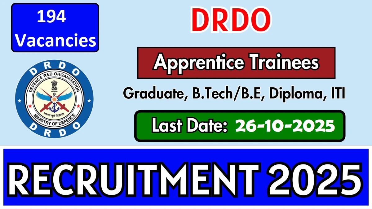DRDO has Announced 195 apprentice positions at RCI Hyderabad for graduates, diploma, and ITI holders. Applications run from September 27 ...